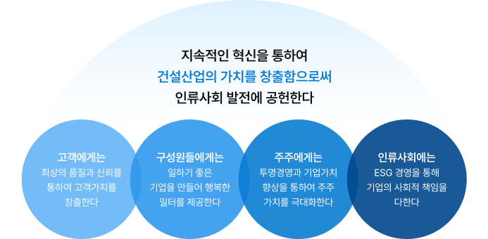 건설산업의 새로운 가치창출을 위해 국내 최고의 건설기술력을 기반으로 끊임없이 혁신합니다